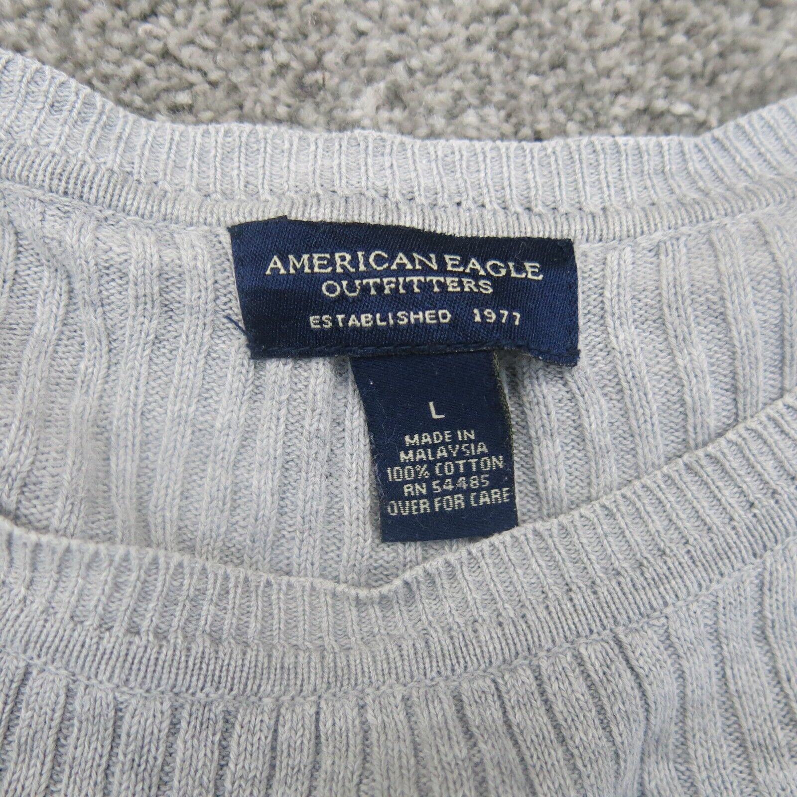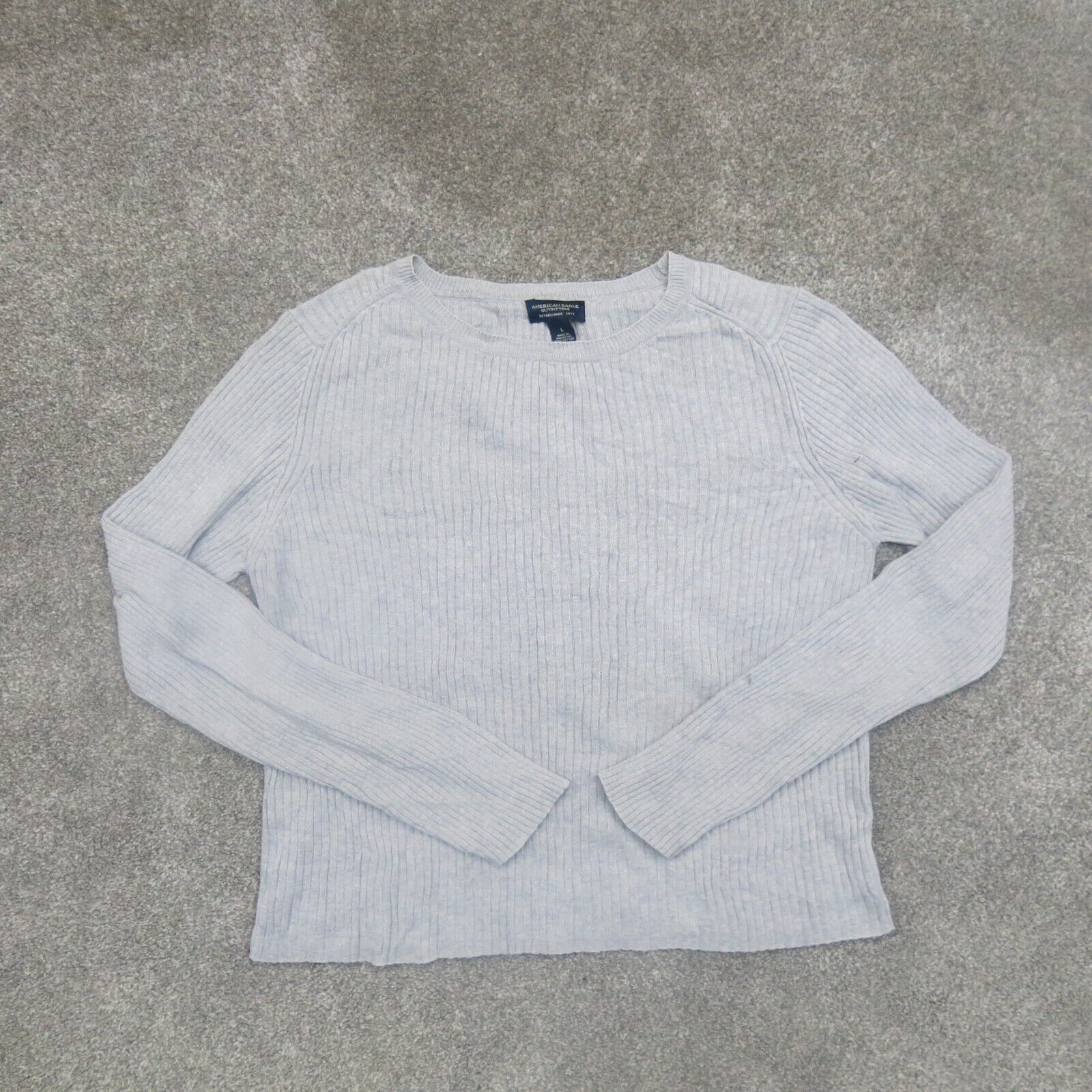 American Eagle Womens Pullover Knitted Sweater Long Sleeves Crew Neck White SZ L