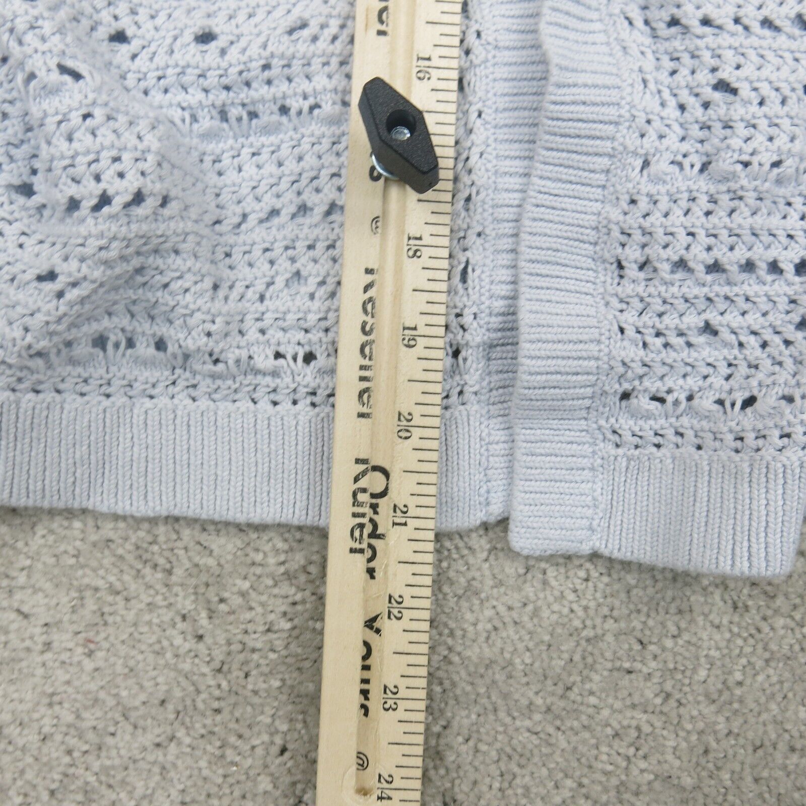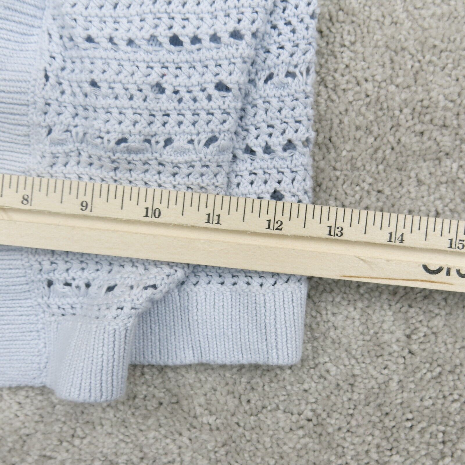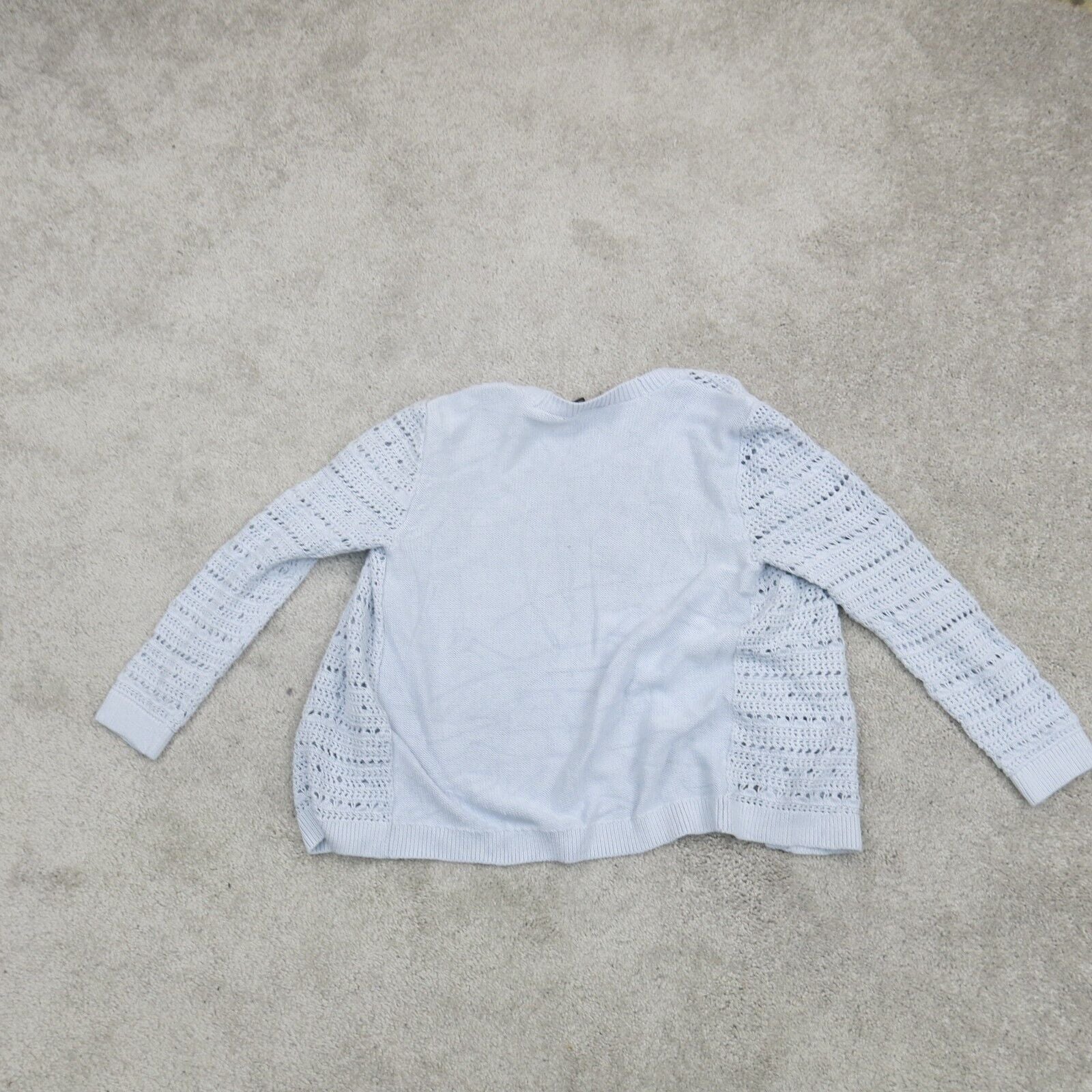 Ann Taylor Womens Cardigan Sweater Open Front Long Sleeves Eyelet Blue Size XS