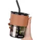 Glass Tumbler with Straw, Lid & Leather Sleeve, Leather Sleeve With Protective Leather Sleeve, Reusable Glass Coffee Tumbler