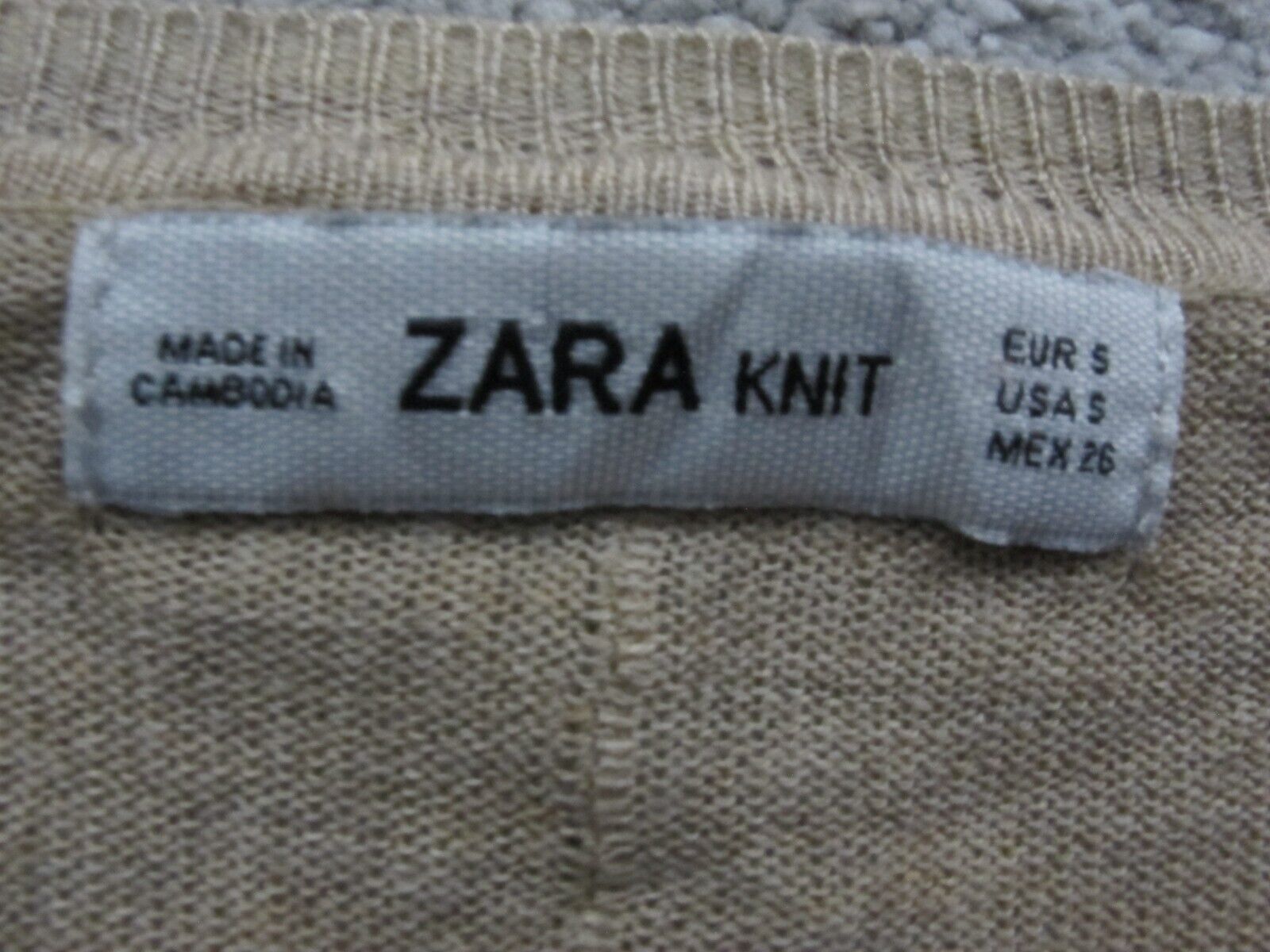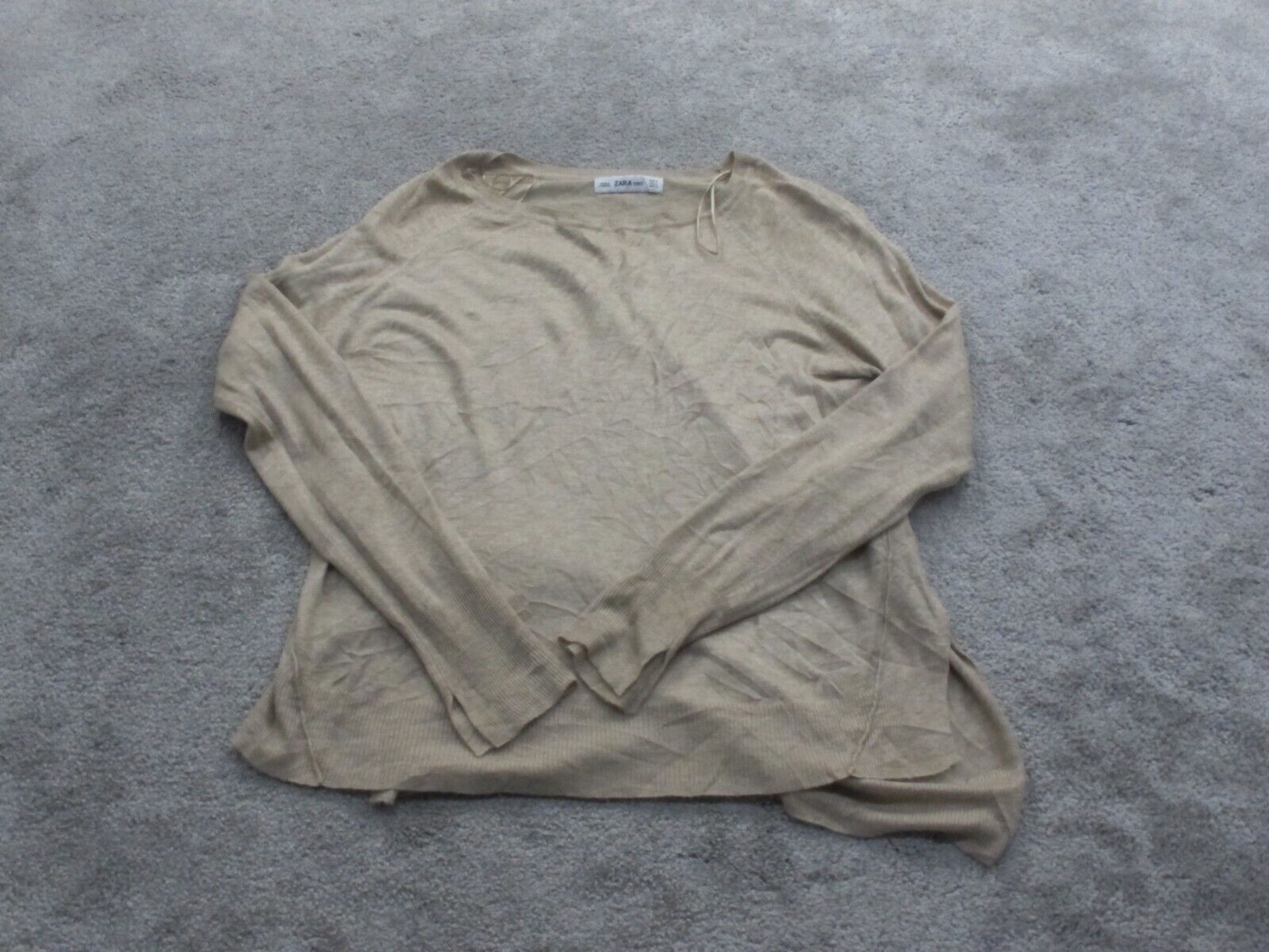Zara Knit Womens Pullover Sweater Knitted Boat Neck Long Sleeves Beige SZ Small